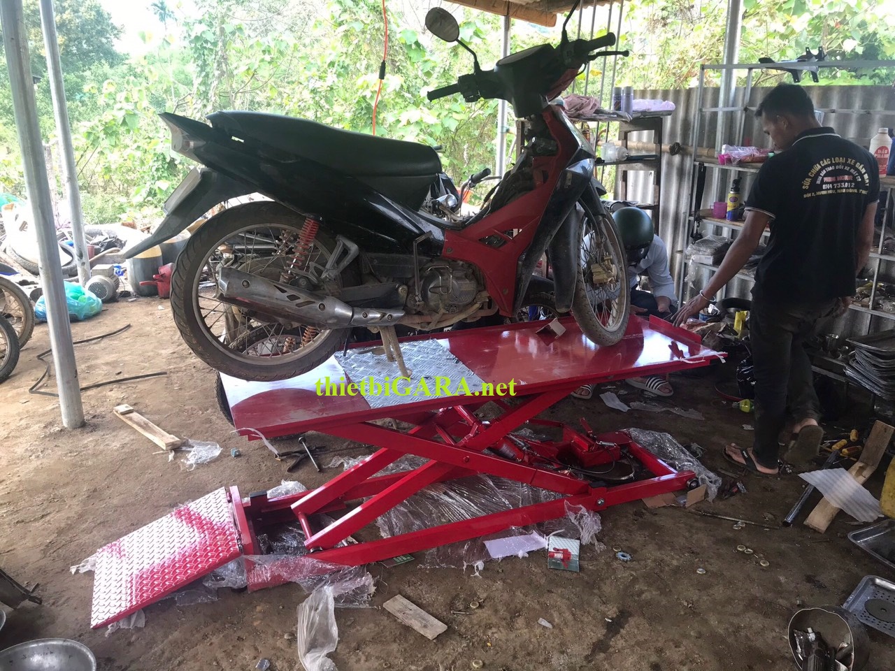 - Bàn nâng xe máy loại cơ thủy lực chuyên dụng cho dịch vụ sửa chữa xe máy chuyên nghiệp.