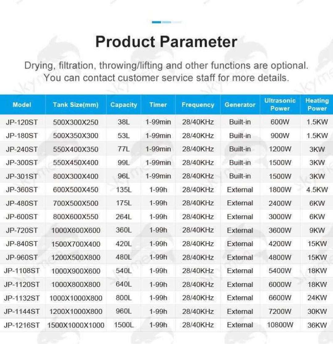 Kích thước 30 lít, Jp-100s có thể sử dụng làm sạch dụng cụ, linh kiện máy móc, khuôn đúc, dụng cụ phòng thí nghiệm, kim loại, nhựa.