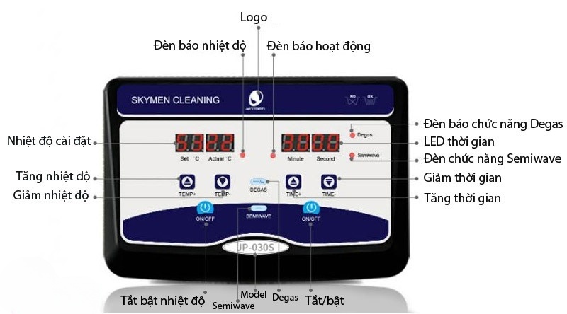 Ngoài ra, máy tích hợp chức năng làm nóng dung dịch tử từ 20 – 80 độ C, thúc dẩy nhanh chóng quá trình dao động bọt khí, hiệu quả làm sạch tăng gấp nhiều lần. Tất cả phím trên bảng điều khiển nhô ra phía ngoài một góc 20 độ so với mặt phẳng giúp việc thao tác trở nên dễ dàng