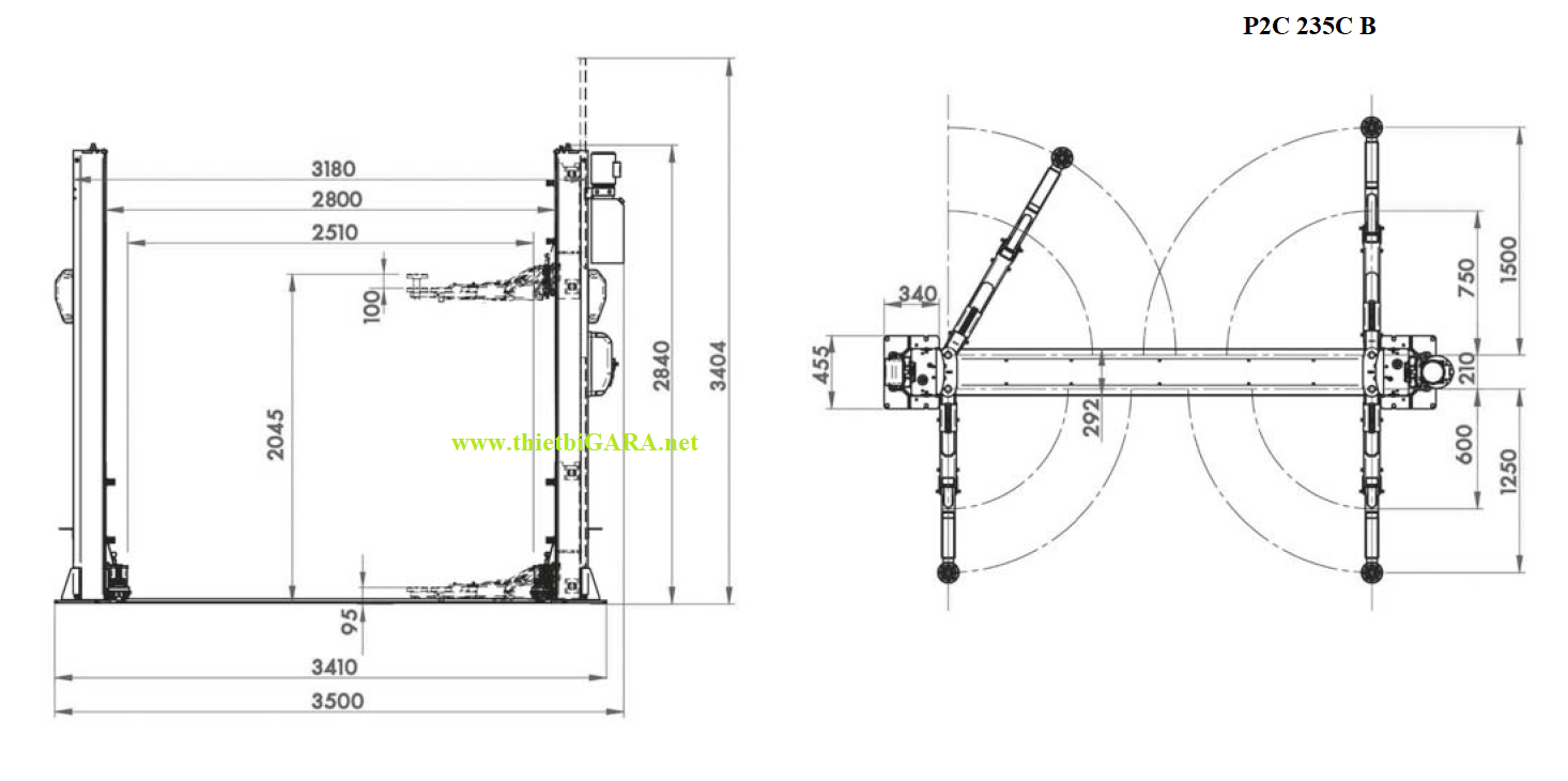 – Chiều dài tay nâng: 600-1250 và 750-1500mm