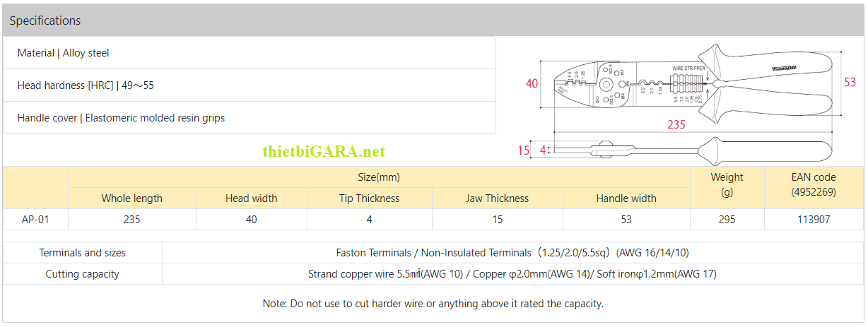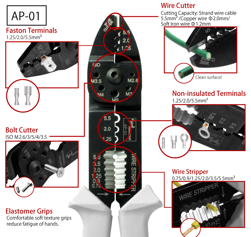 Kìm Điện Bấm Cos Đa Năng AP-01 Tsunoda