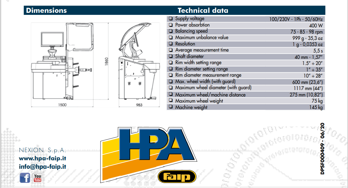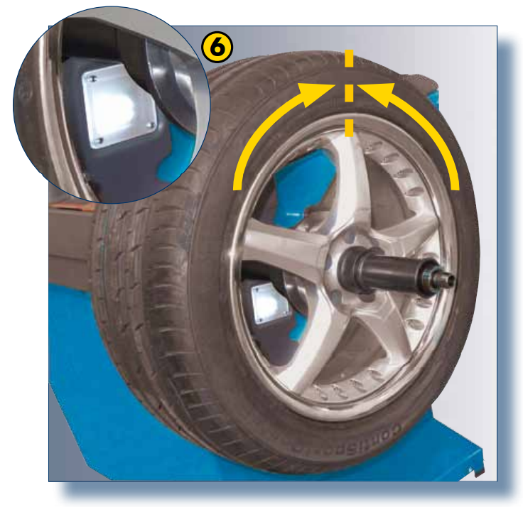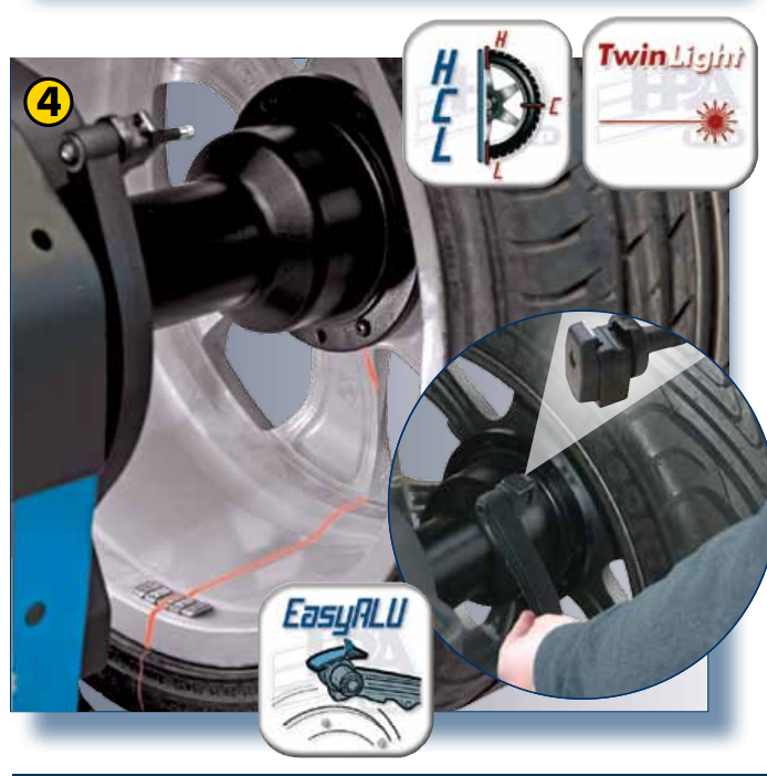 và tự động được đưa đến vị trí cân bằng (RPA). Đèn LED tích hợp chiếu sáng khu vực làm việc để tạo điều kiện thuận lợi cho việc vệ sinh vành và lắp đặt đối trọng.