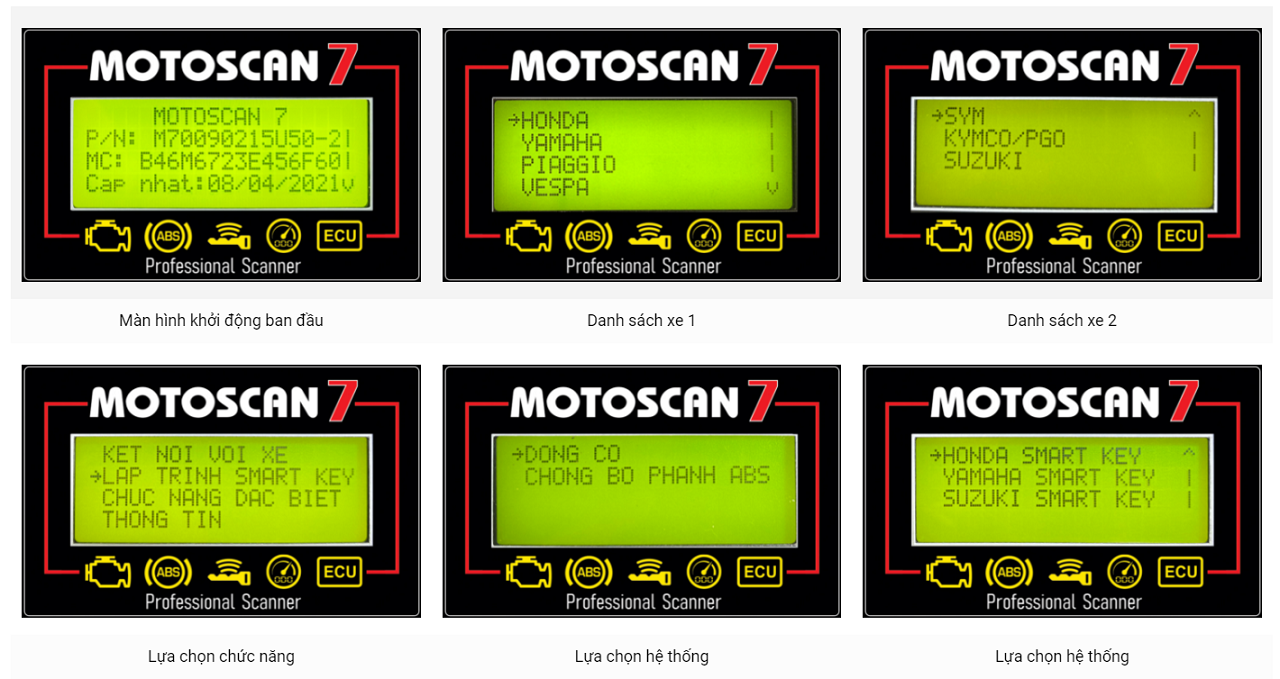 | PHIÊN BẢN 2 DÒNG XE (mã sản phẩm: MT007HY MT007HS) | MOTOSCAN 7HY/ 7HS Hỗ trợ cho 2 nhà sản xuất xe: HONDA +YAMAHA (MOTOSCAN 7HY) HONDA + SYM (MOTOSCAN 7HS) | 10.300.000 | |