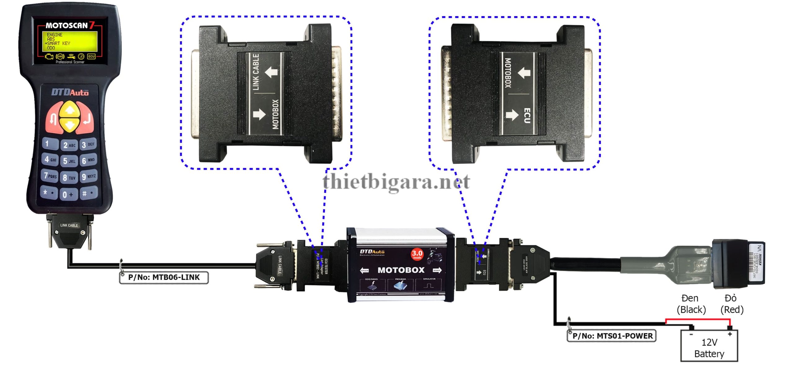 MOTOBOX được thiết kế như 1 thiết bị phần cứng cộng thêm và tương thích với thiết bị cầm tay MOTOSCAN hoặc phần mềm