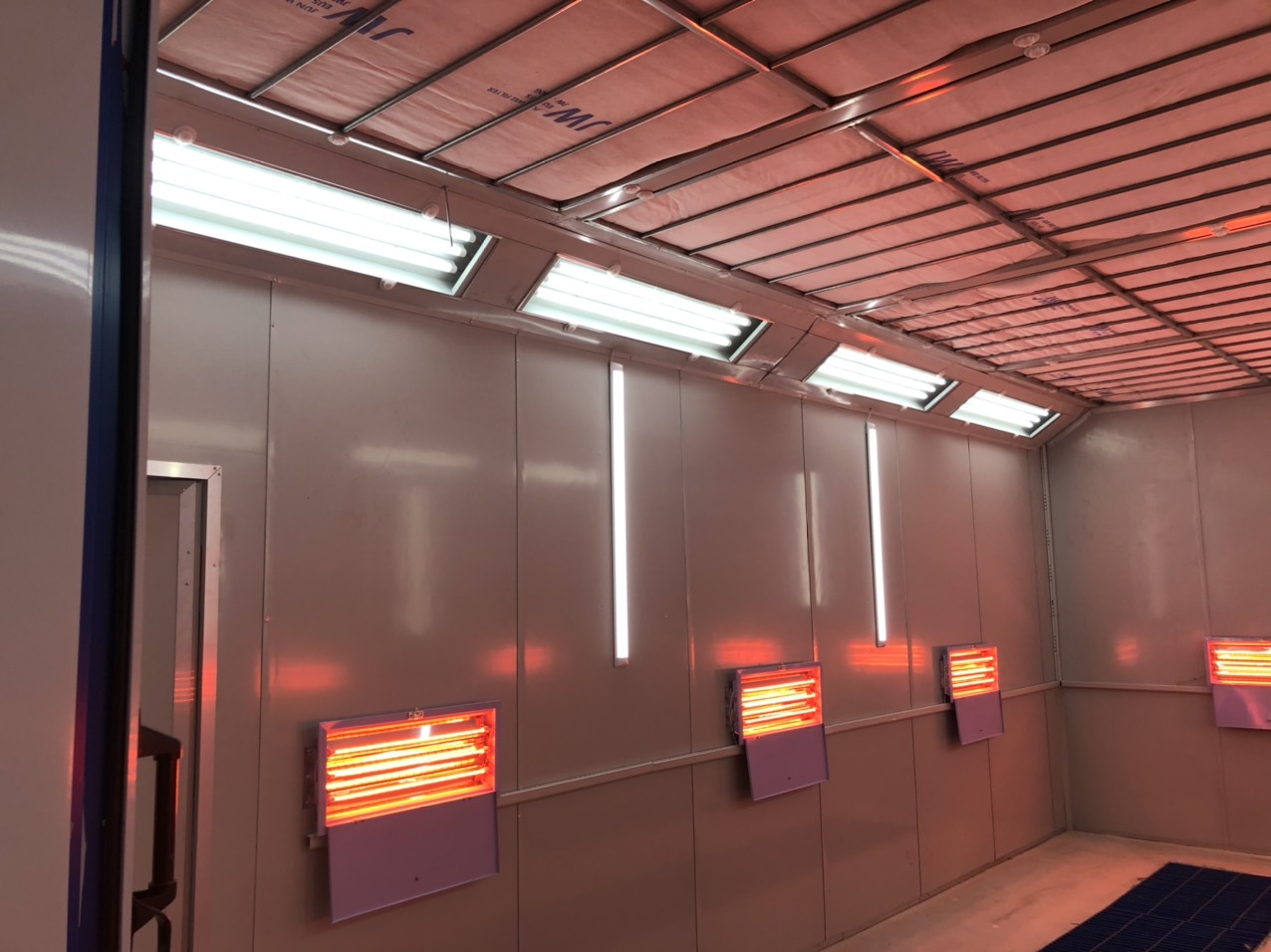 - Sử dụng hệ thống sấy điện hồng ngoại, hệ thống đèn sấy công suất cao tạo nhiệt nhanh cho việc sấy sơn được nhanh chóng và chất lượng màu sơn đạt chuẩn theo yêu cầu.