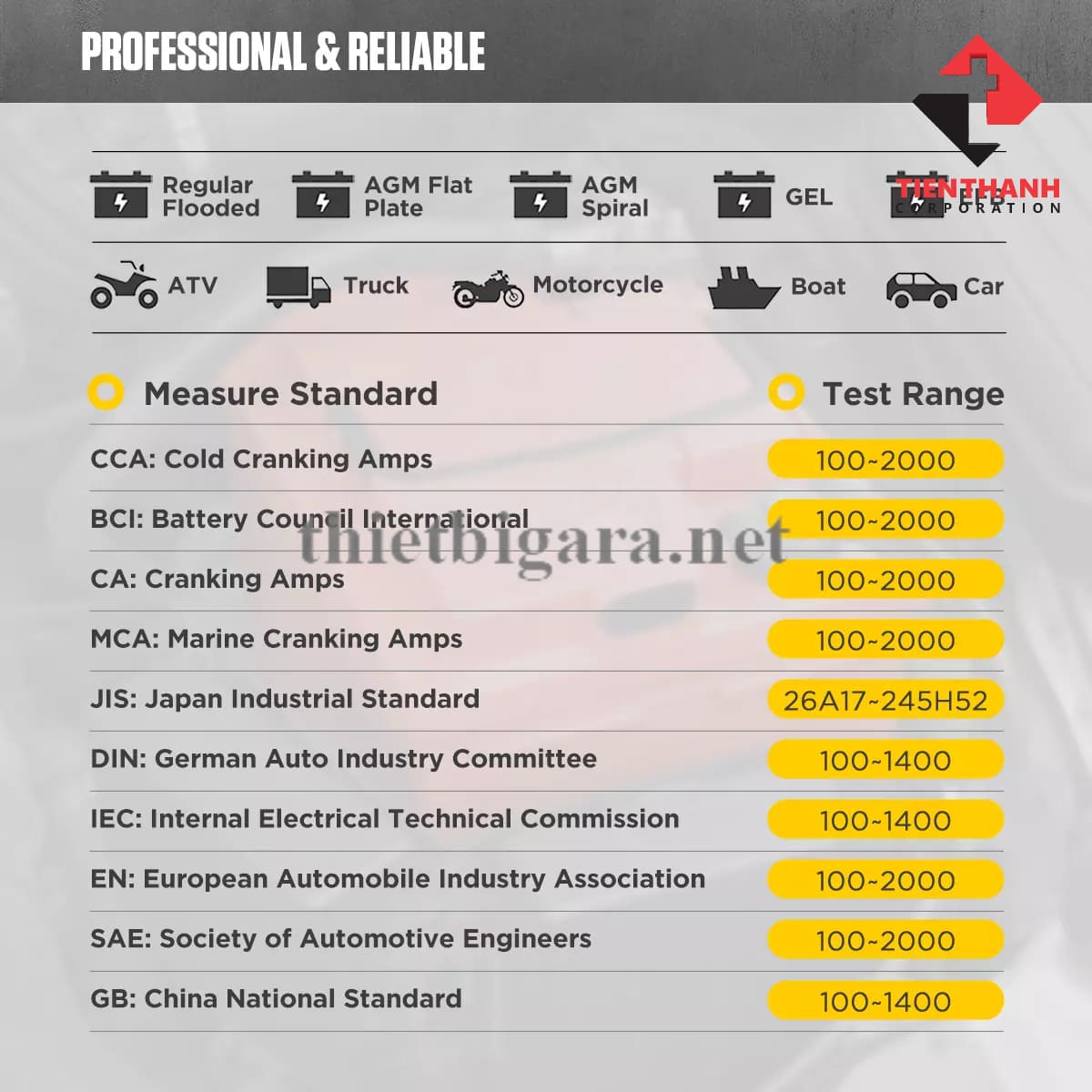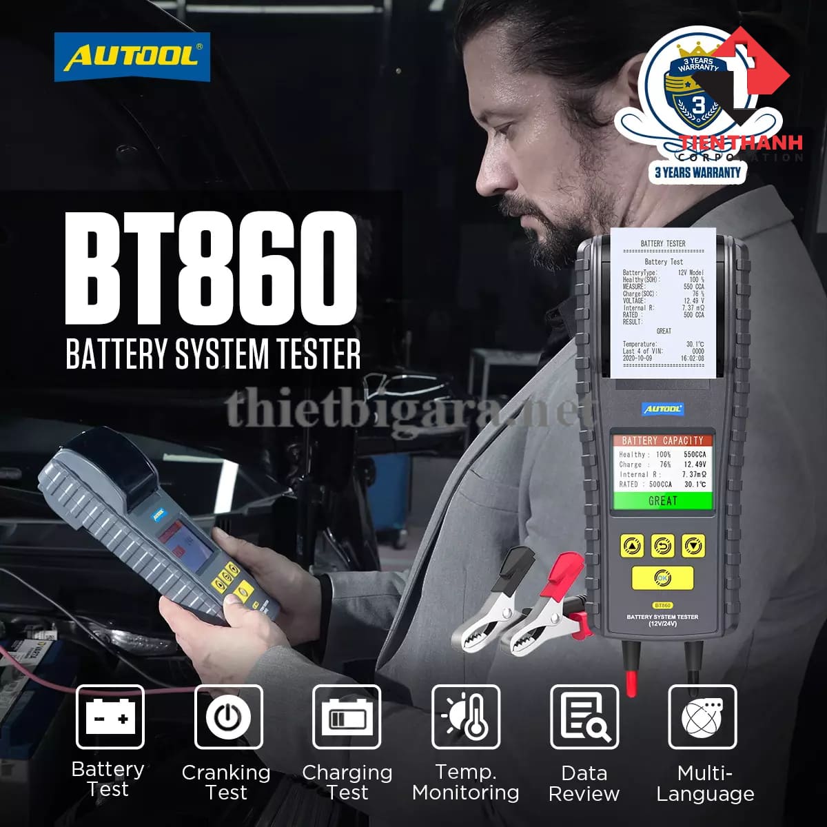 Tính năng, đặc điểm thiết bị kiểm tra ắc quy ô tô AUTOOL BT860 12-24V: