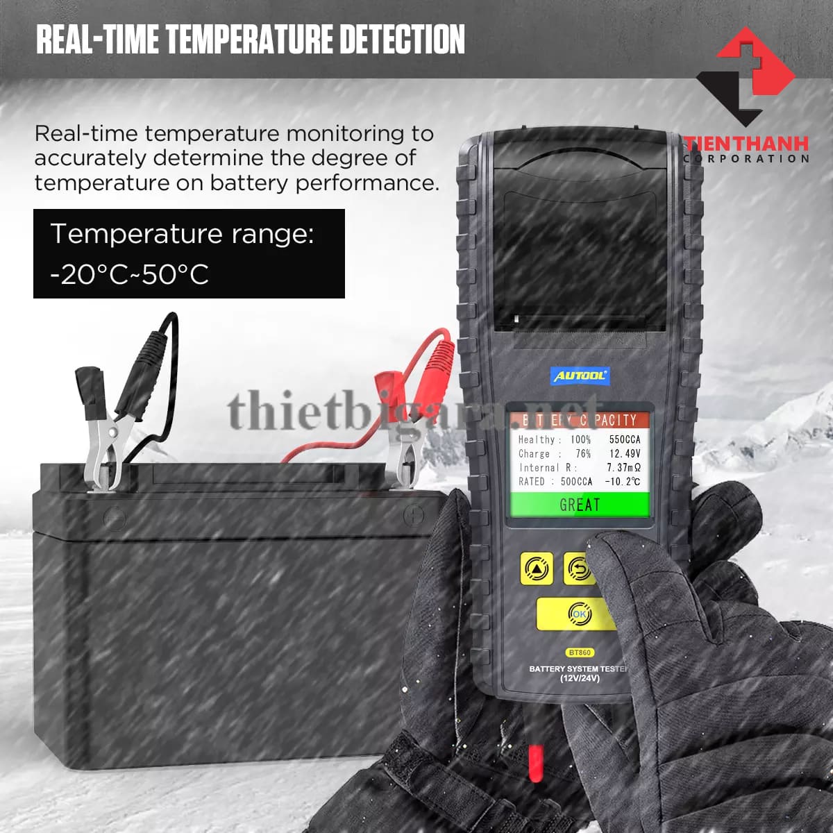 1. Với khả năng theo dõi nhiệt độ theo thời gian thực, BT860 có thể xác định chính ax mức độ ảnh hưởng của nhiệt độ đến hiệu suất của ắc quy.