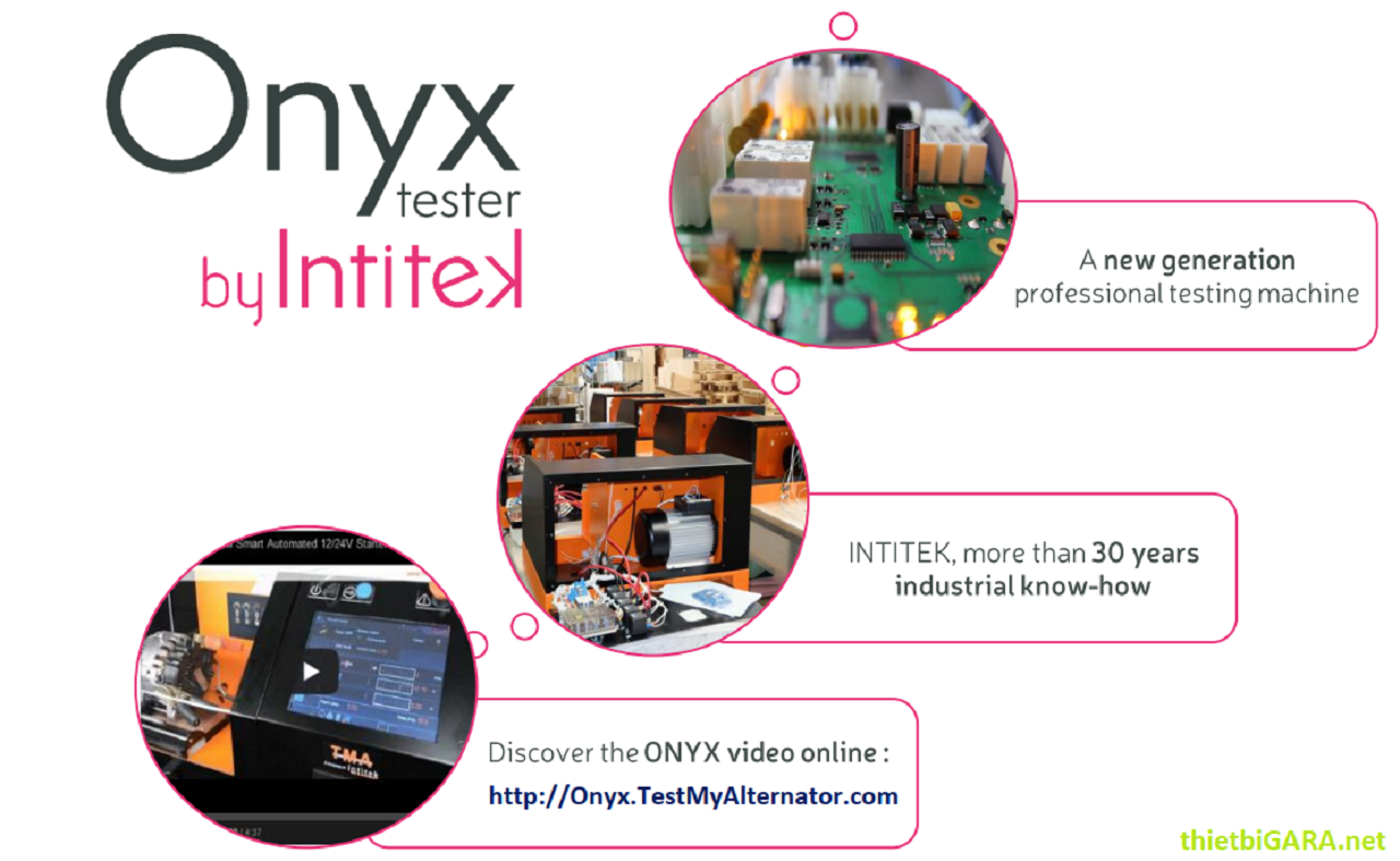 - Máy kiểm tra ONYX, sản phẩm mũi nhọn của INTITEK, là giải pháp sáng tạo và hoàn chỉnh nhất trên thị trường toàn cầu, đồng thời đại diện cho tương lai của thiết bị kiểm tra thông minh toàn cầu dành cho máy phát điện và bộ khởi động 12 / 24V.