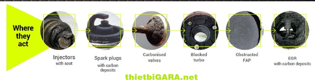 - Nhiệt trị cao của khí orto-oxyhydrogen được bơm vào động cơ khiến nhiệt độ đốt cháy tăng nhanh, gây ra quá trình nhiệt phân có kiểm soát diễn ra, đốt cháy, phân hủy và loại bỏ tất cả cặn carbon tích tụ chỉ trong 60 phút.